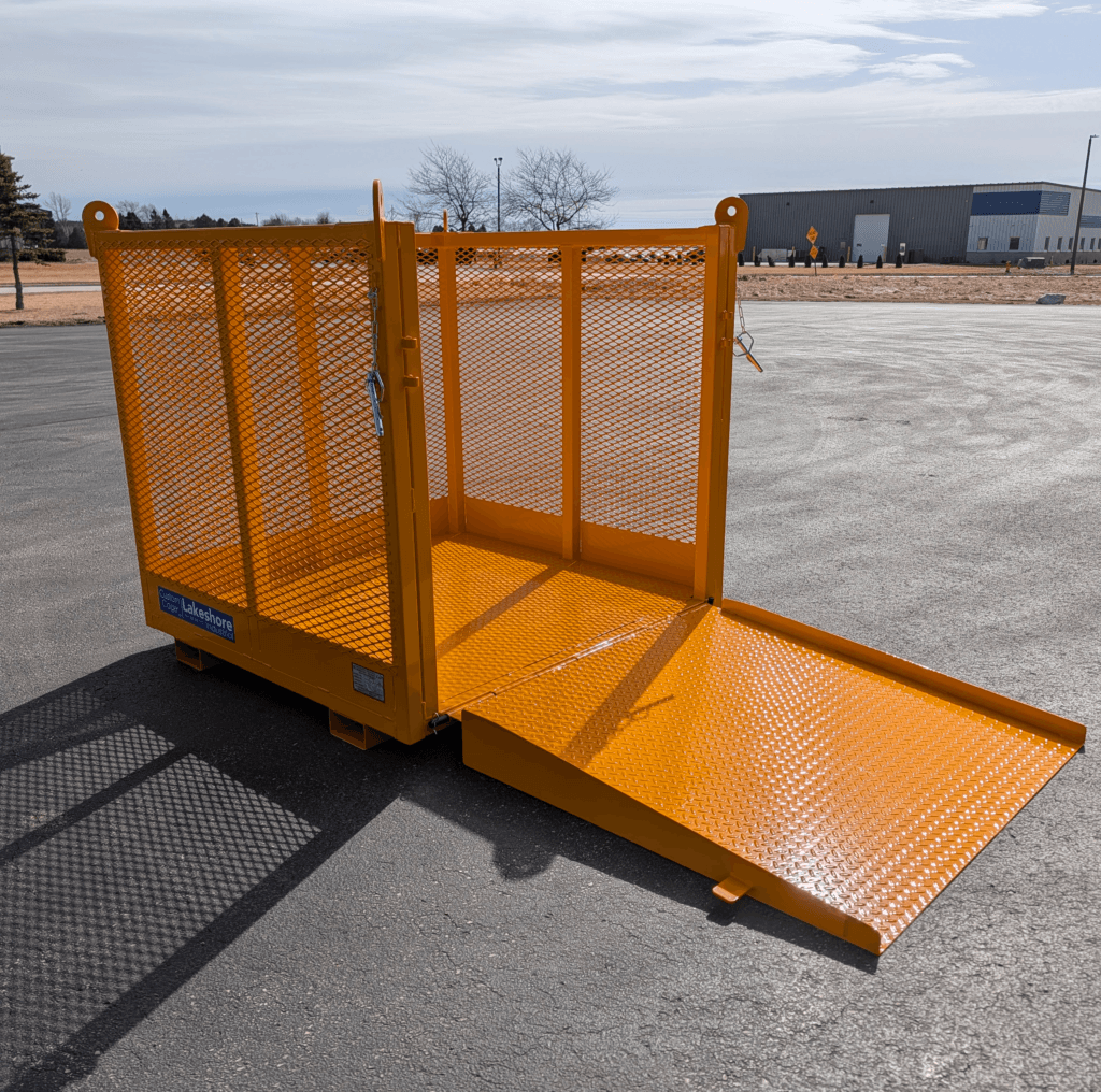 View the pallet cage and other material baskets here: https://lakeshoreind.com/crane-material-baskets/material-handling-cages/